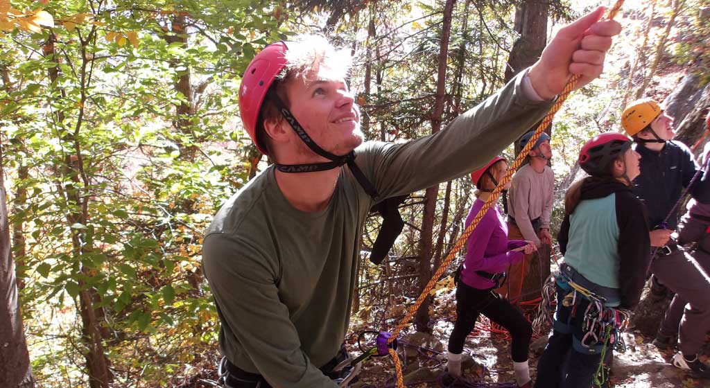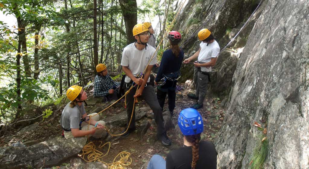 Northern New England is a renowned climbing destination, and our rock climbing sessions take place at some of the many granite crags and cliffs that make the region so famous. Students learn how to properly use harnesses, helmets, ropes and belay devices, and no prior experience is expected. Participants will start with the basics of tying into the rope, safely belaying each other and practicing efficient movement over rock using friction techniques, edging and crack climbing. As students build on their experience and skills, they’ll have the opportunity to develop more advanced climbing techniques and practice setting up top ropes and building anchors at various climbing sites.