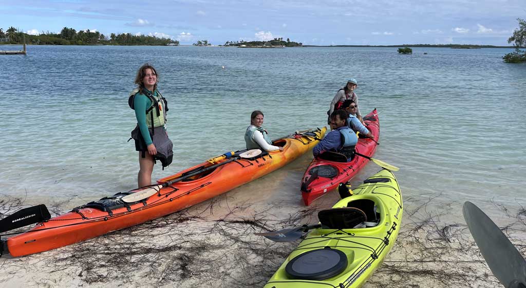 Sea kayaks offer a mode of transportation in the Exumas that reaches locations inaccessible by sailboat and yacht. As we move beyond the heavily trafficked areas, this part of the course allows students to have more intimate interaction with the sea and land of this remarkable natural habitat. Students will have the opportunity to paddle both single and double kayaks, learning the techniques necessary to handle each craft. This allows students to work as part of a team but also develop individual skills on the water.